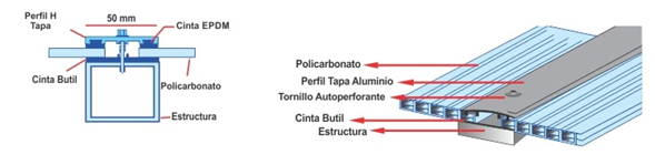 3. SISTEMAS DE PERFILES H PARA LA UNION Y FIJACION DE PLANCHAS DE POLICARBONATO