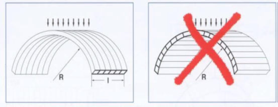 a. Dimensionamiento para techos curvos: La estructura generalmente se realiza con tubos de metal 2” x 1” que se mandan a rolar para darles la curvatura deseada.  Considere el radio mínimo de curvatura que le puede dar al arco y las correas de apoyo dependiendo del espesor de la plancha que utilice, de acuerdo a lo siguiente: