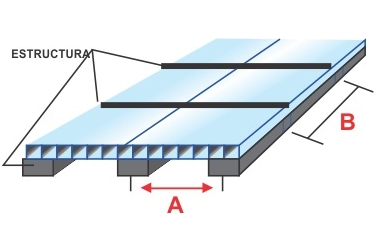 Espesor Distancia entre apoyos losngitudinales A Distancia entre apoyos transversales B