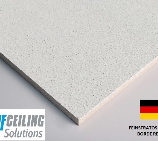 BALDOSA AMF KNAUF  FEINSTRATOS MICRO BORDE RECTO Estas placas presentan virtudes ignífugas, resistencia a la humedad, reflexión a la luz, conductividad térmica y absorción acústica. Posee HDE (Heavy Duty Edge), un nuevo y exclusivo tratamiento endurecedor de bordes, lo que la convierte en una placa mucho más resistente a los pequeños impactos. AMF THERMATEX Feinstratos microperforado proporciona, gracias a su superficie de arena fina, una imagen de techo armoniosa. Además el acabado microperforado incrementa los valores de absorción acústica.